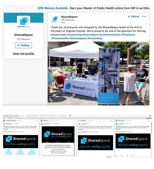 SharedSpace One Sheets and Social Media View fullsize Social media campaign to highlight events, build brand and attract new members. View fullsize One sheets and merchandise. Social media campaign. Building signage. SharedSpace Identity RELATED PROJECTS